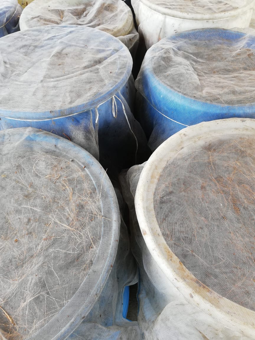 realiza a mano en canoas de madera, donde los artesanos golpean las piñas con mazos de madera en